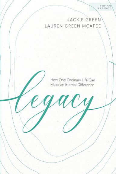 Legacy, a 6-session Bible study by Jackie Green and Lauren Green McAfee, examine the character and actions of women in scripture to motivate you to live in a way that leaves a legacy for others.