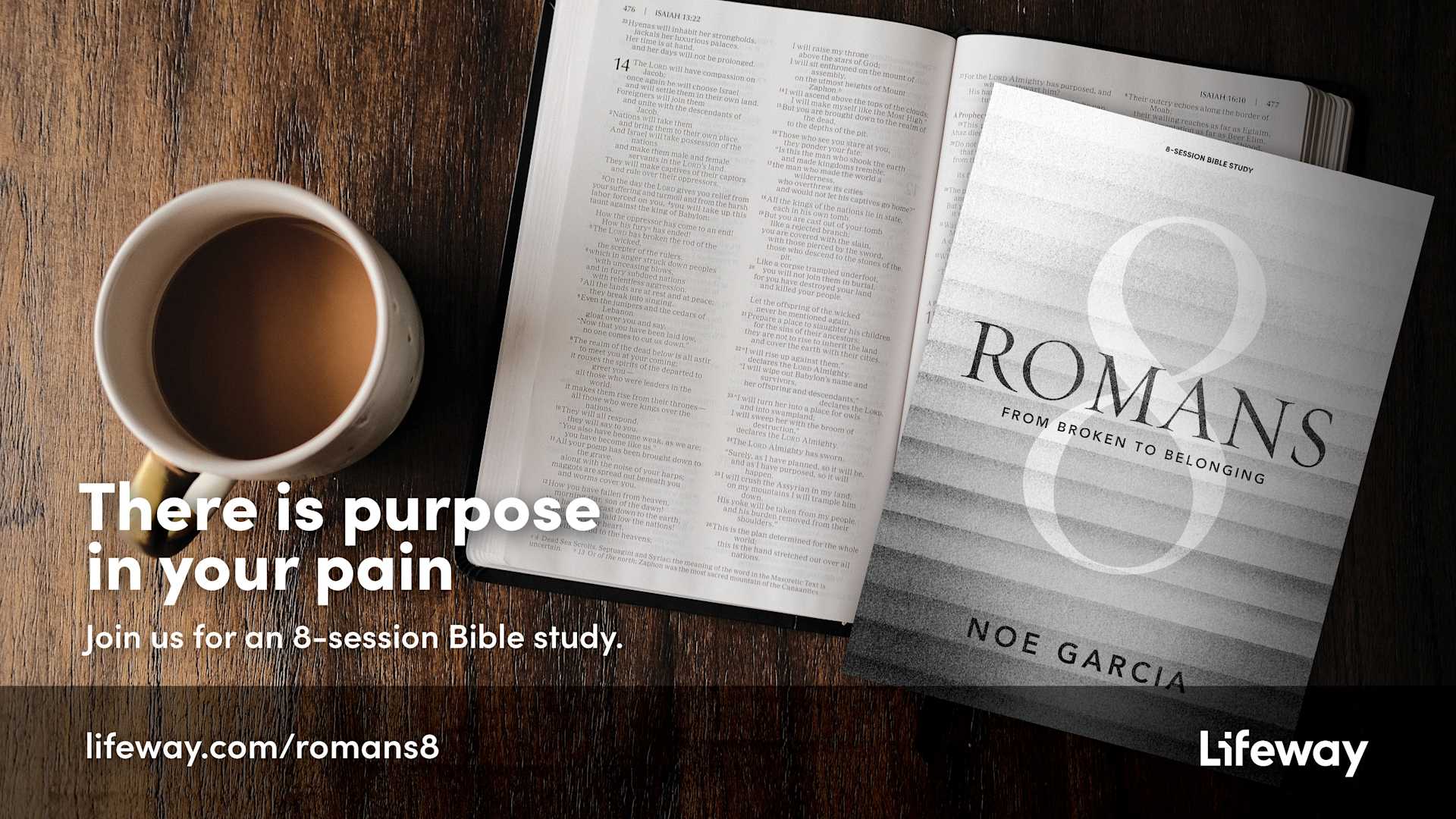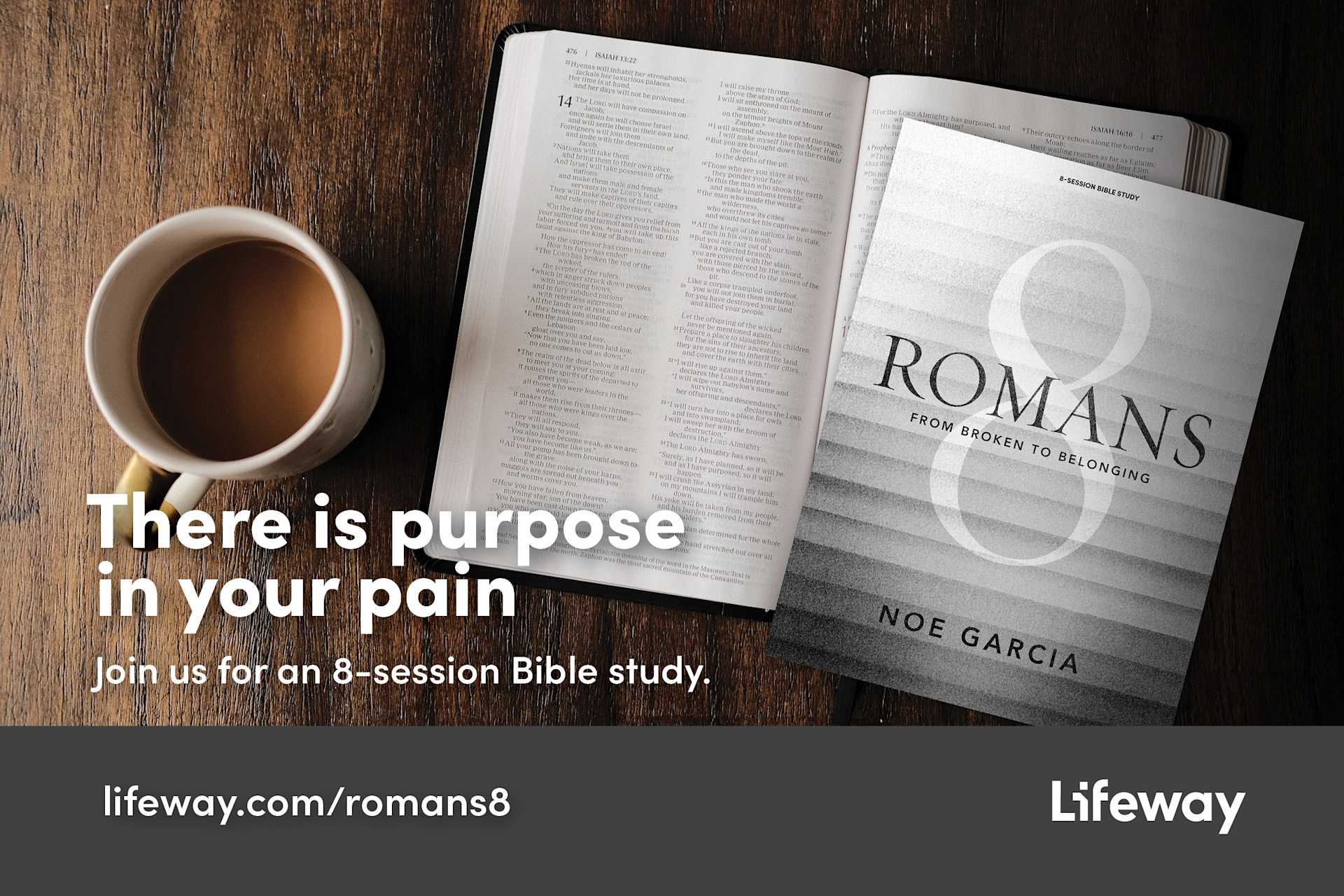We all tend to look and search for purpose in our pain and suffering. In this Bible study, Noe Garcia takes participants on a journey through Romans 8, which many scholars believe is the greatest chapter in the Bible. Noe shares his life story and experiences of abuse, depression, and overwhelming hopelessness. He reveals how God redeemed, repaired, and restored him. Through Romans 8, he'll help you understand Christ's transformative power to repurpose hurt and brokenness for your good and His glory.