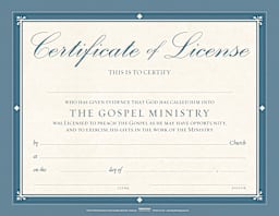 Certificate of License for The Gospel Ministry - Flat Parchment (Package of 6)