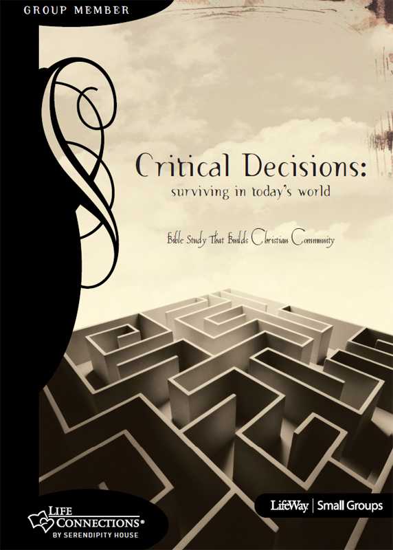 Critical Decisions: Surviving in Today's World - Member Book is a 13 session Bible study on the theme of making right choices. Every day we face critical decisions that can have a positive or negative affect in our lives. We need God's wisdom as we navigate through life's ups and downs. His wisdom is found in His Word.